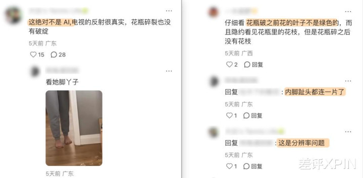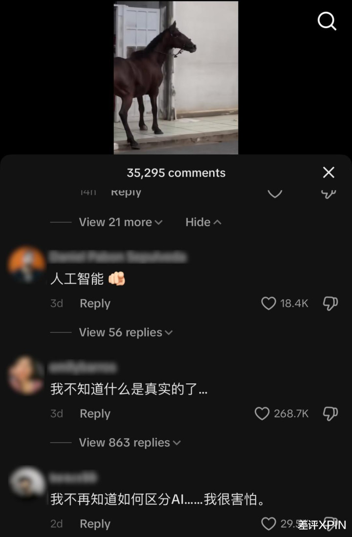 你发现没,越来越多的评论区已经不再讨论内容本身了,而是变成大型侦探现场:网友们逐帧分析、寻找 AI 痕迹,集体陷入了“我们已经分辨不出 AI”的恐慌中。
