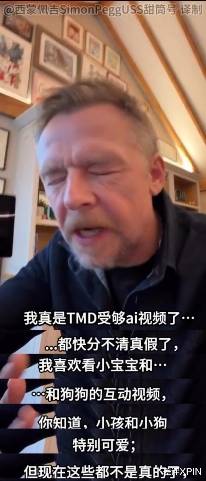 前几天我在小红书刷到一段搬运视频,英国演员 Simon Pegg 在 instagram 上对 AI 视频深恶痛绝。